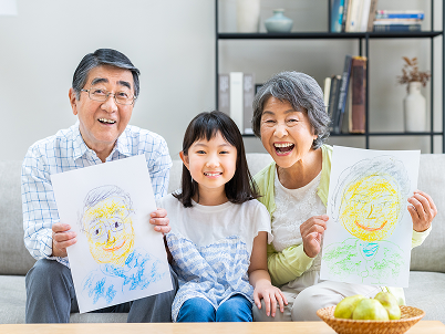 お年寄りの方に楽しみは何かとたずねたところ、「家族との語らい」や「おいしいものを食べること」をあげる人が多くいました。そうなのです。自分の歯で何でも噛めるということは、その人の「生きがい」や「健康」そのものでもあったのです。