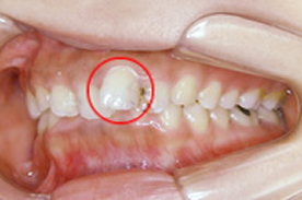 | 主訴 | 八重歯。口唇に当たって痛い。 |
